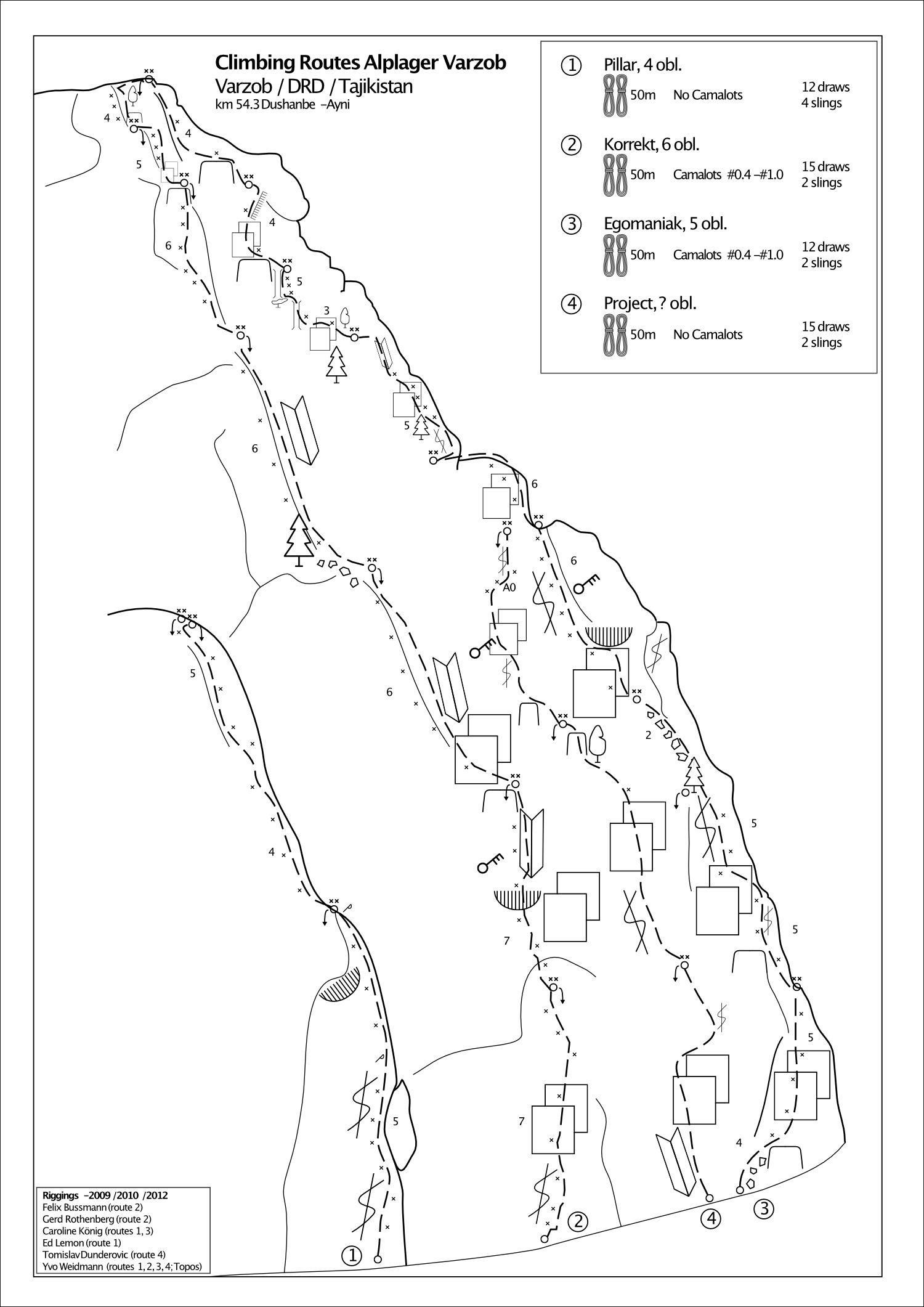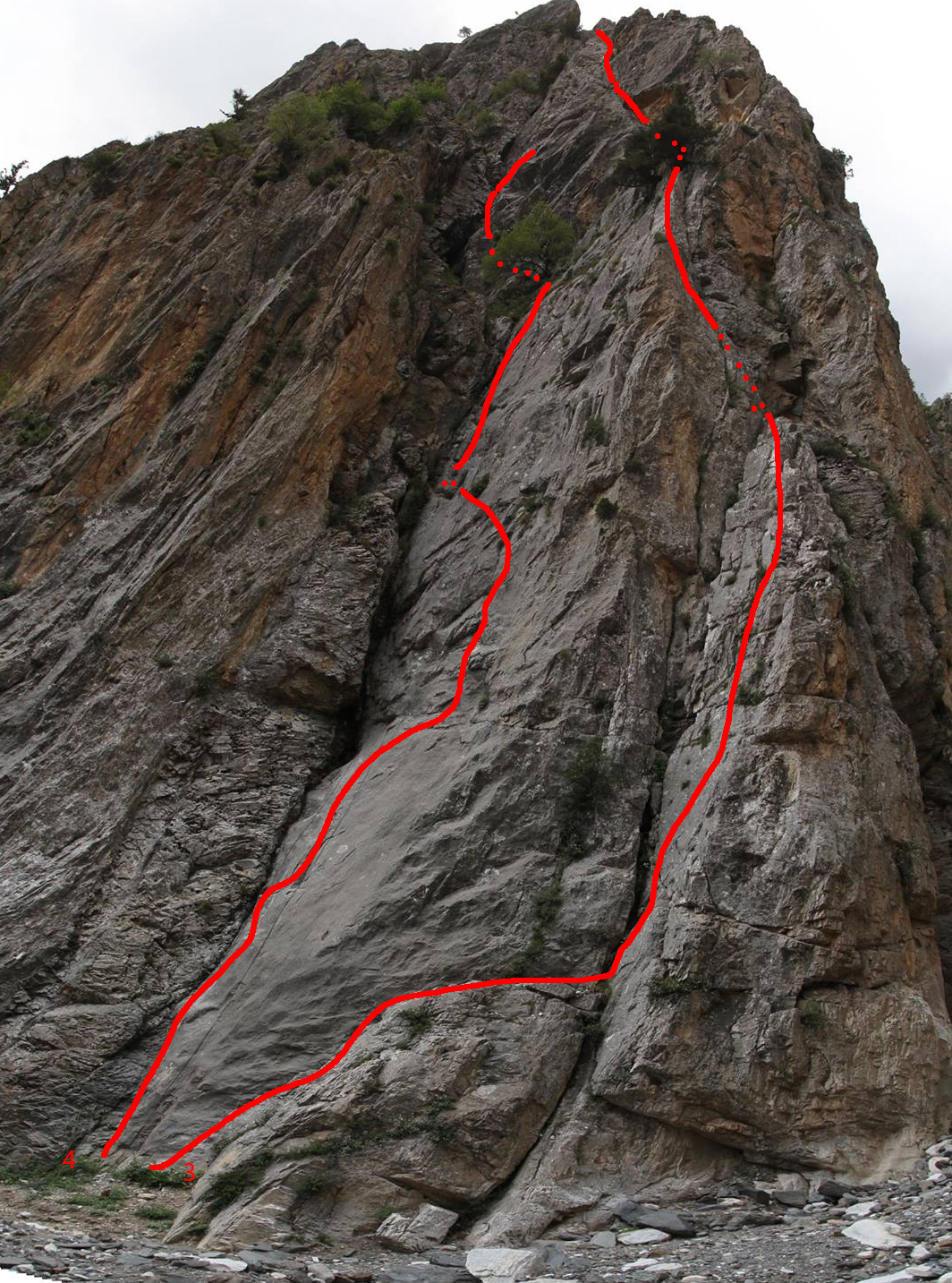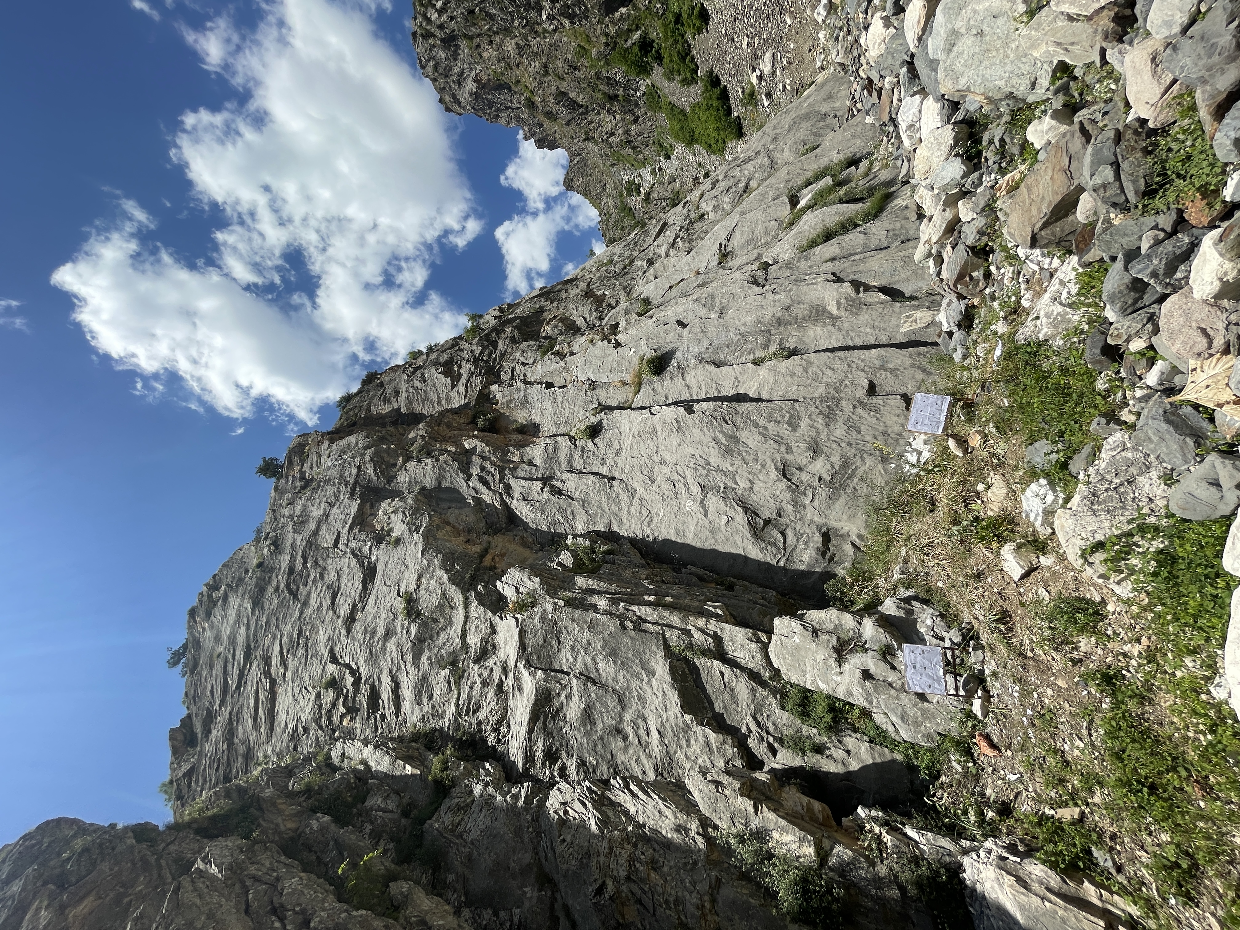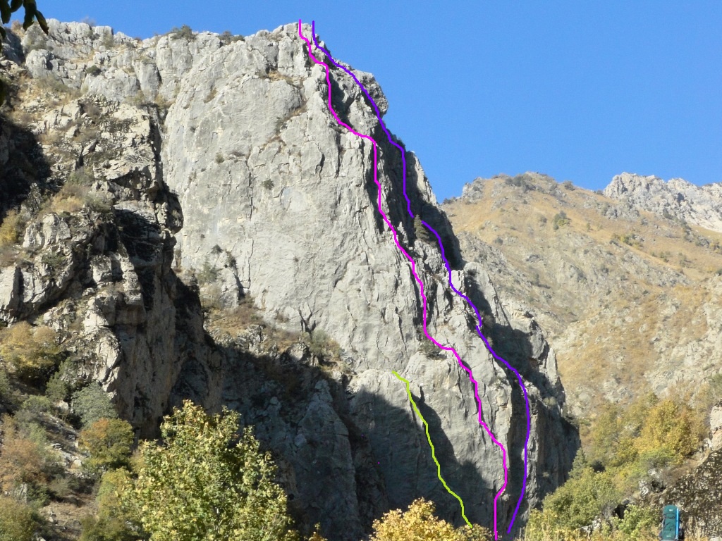 Big nice multi-pith wall located after the former alpine camp, now a military training area. You can still pass through when there is no military training. There are frequent rock falls, please don’t forget your helmet!
