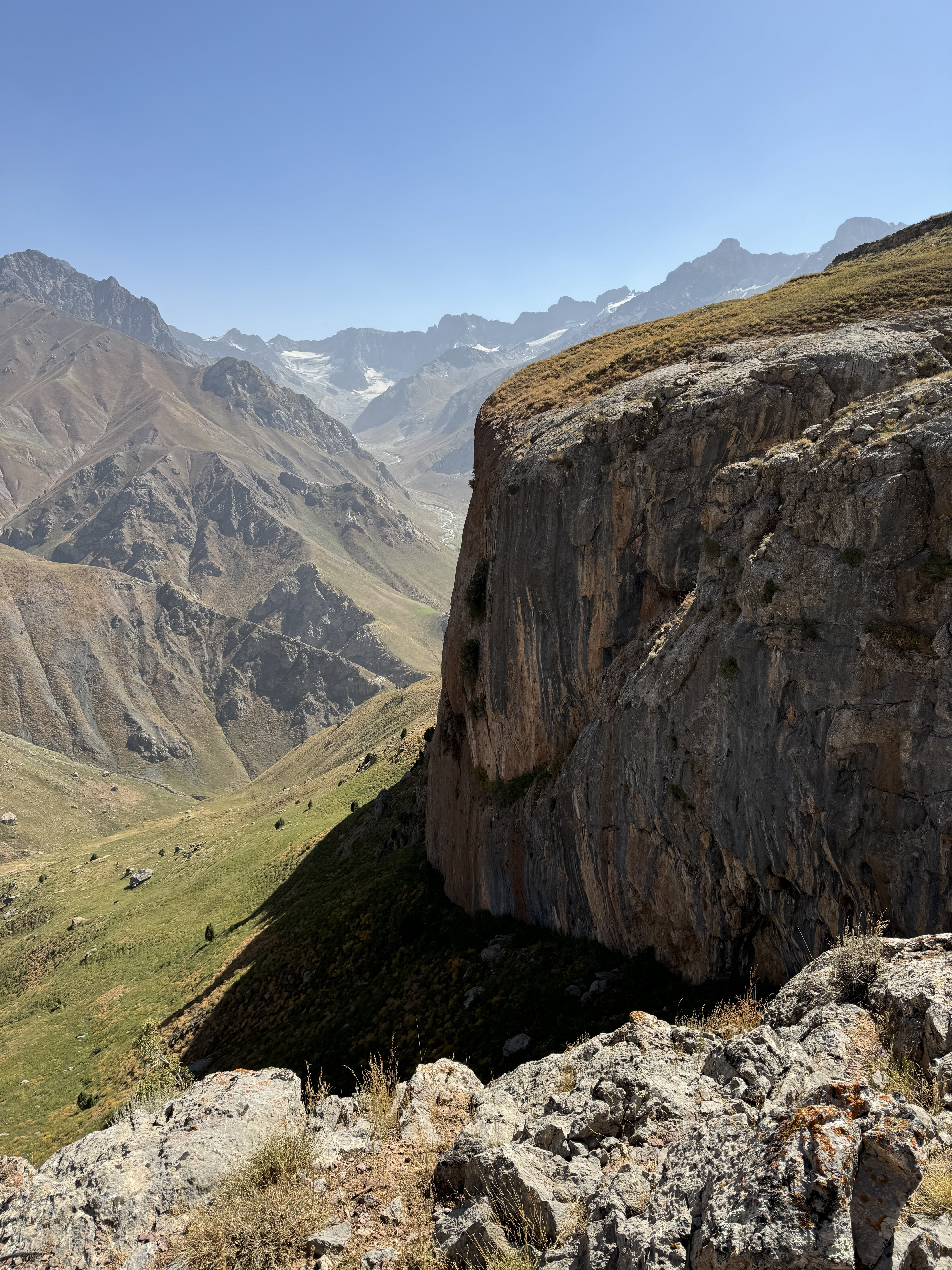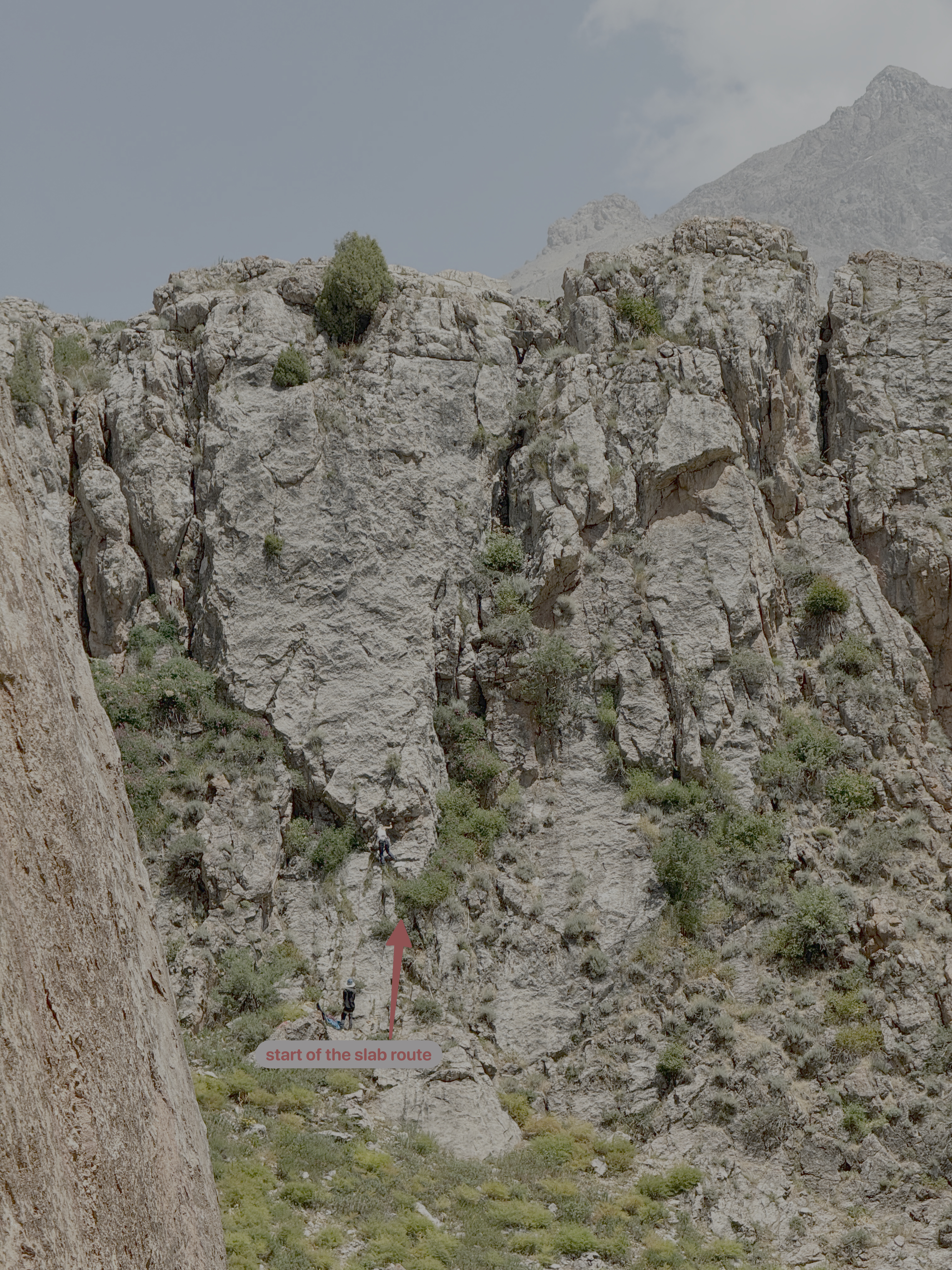 Beautiful wall above Ziddy, near Kukteppa settlement. It has only just started to be developed but has excelent potential for both sport and multi-pitch climbing. It is located at an altitude of almost 3000 meters above sea level which makes it a beautiful summer climbing destination.